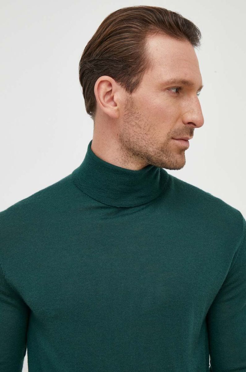 Вовняний светр United Colors of Benetton чоловічий колір зелений легкий гольф