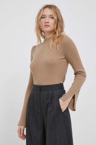 Вовняний светр United Colors of Benetton жіночий колір коричневий легкий півгольф