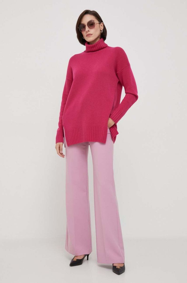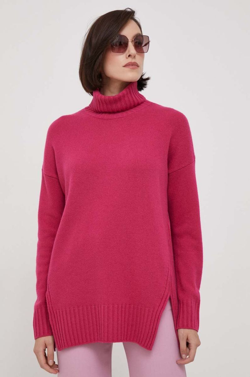 Вовняний светр United Colors of Benetton жіночий колір рожевий гольф (3645585)