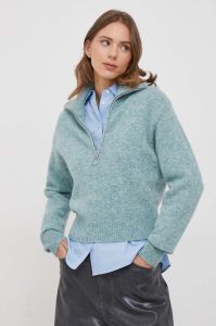 Вовняний светр United Colors of Benetton жіночий півгольф колір блакитний