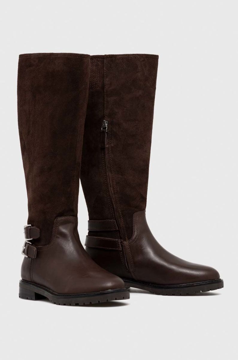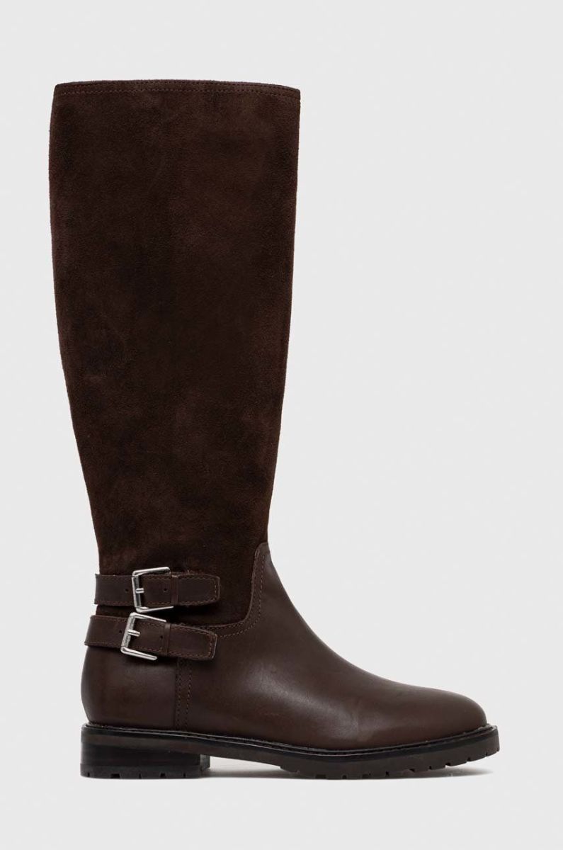 Замшеві чоботи Lauren Ralph Lauren Burncalf Emelie жіночі колір коричневий на плоскому ходу 802875299003