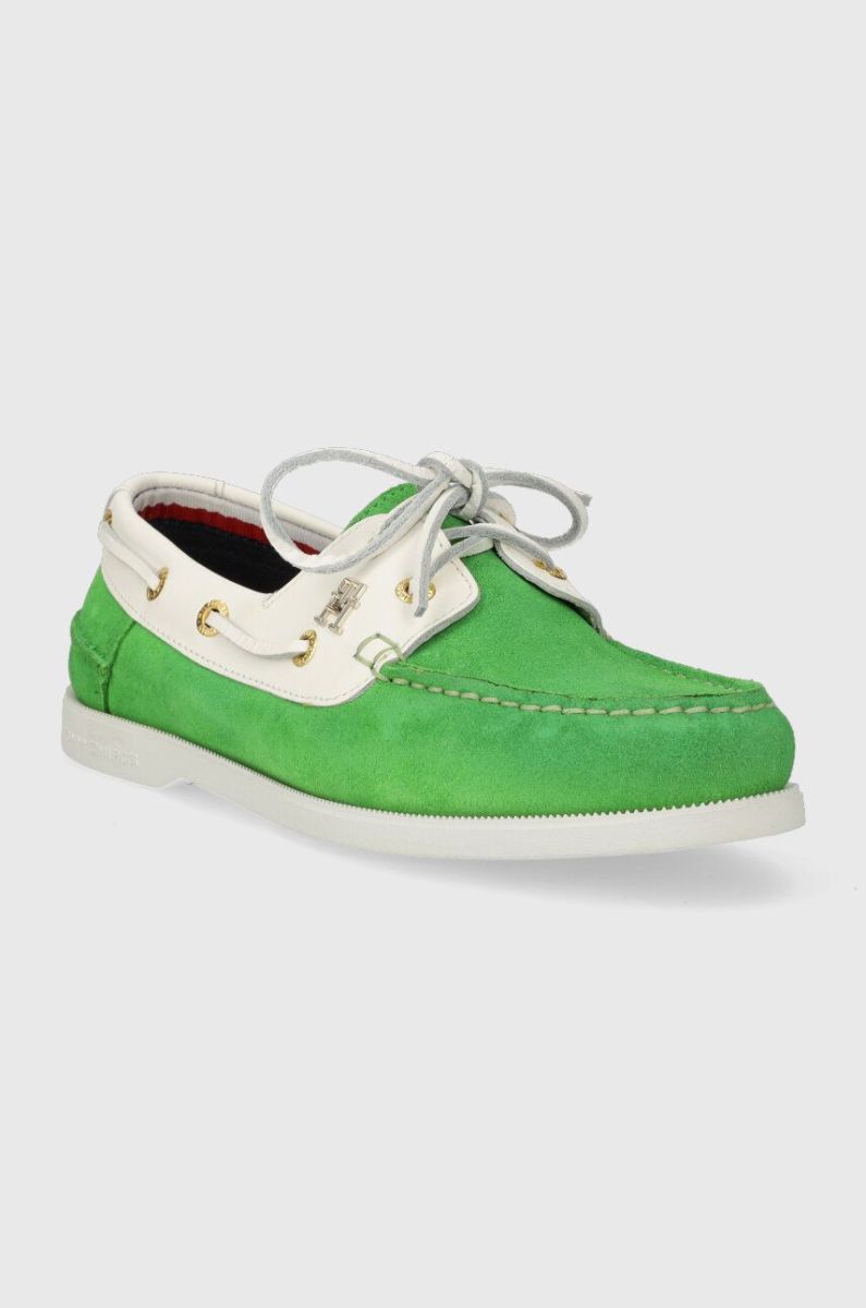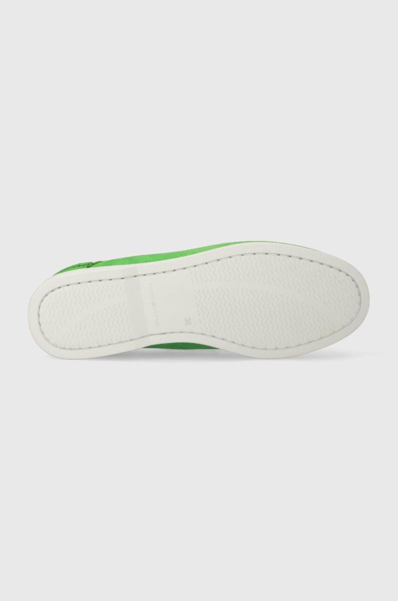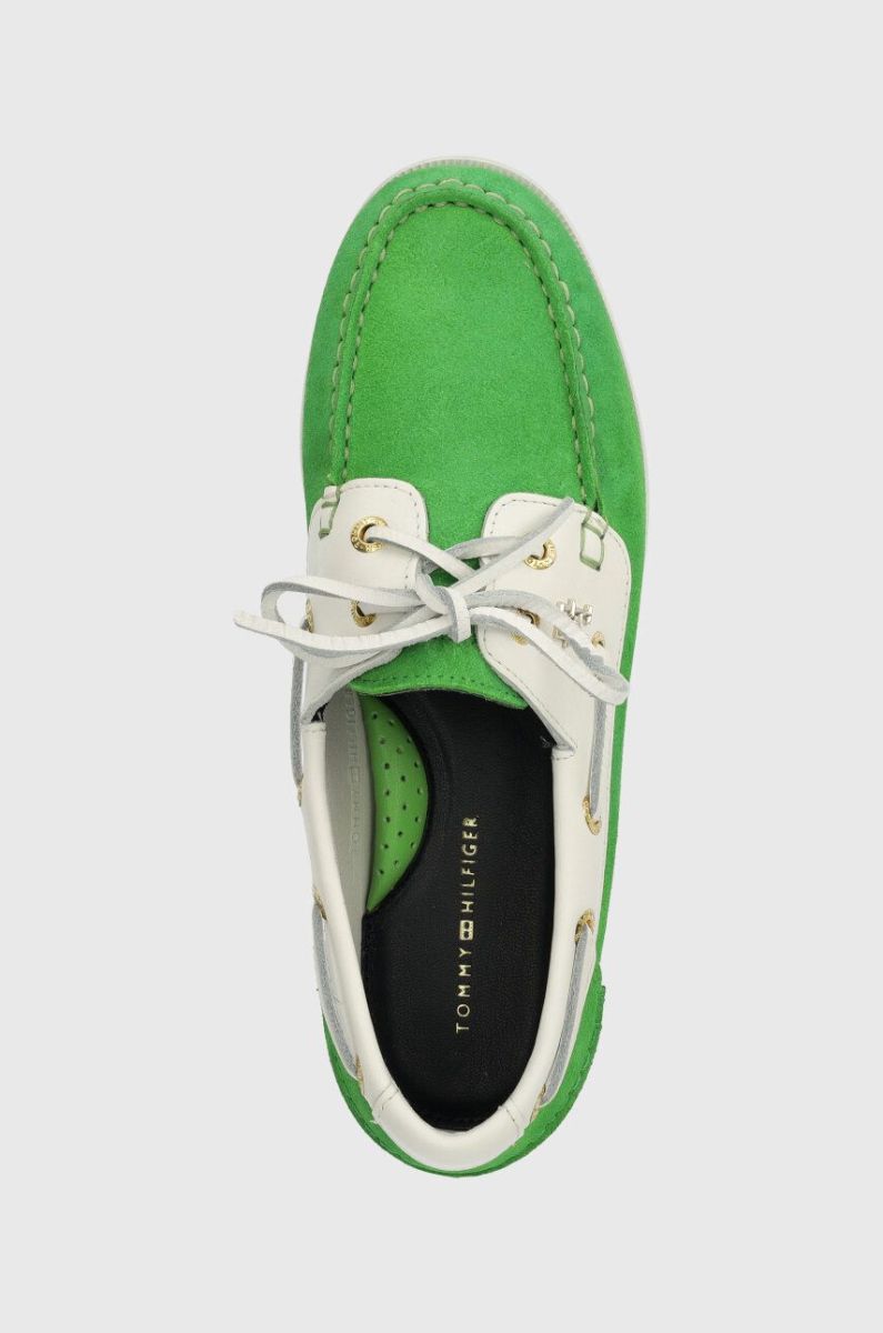 Замшеві мокасини Tommy Hilfiger TH BOAT SHOE жіночі колір зелений на плоскому ходу FW0FW07066