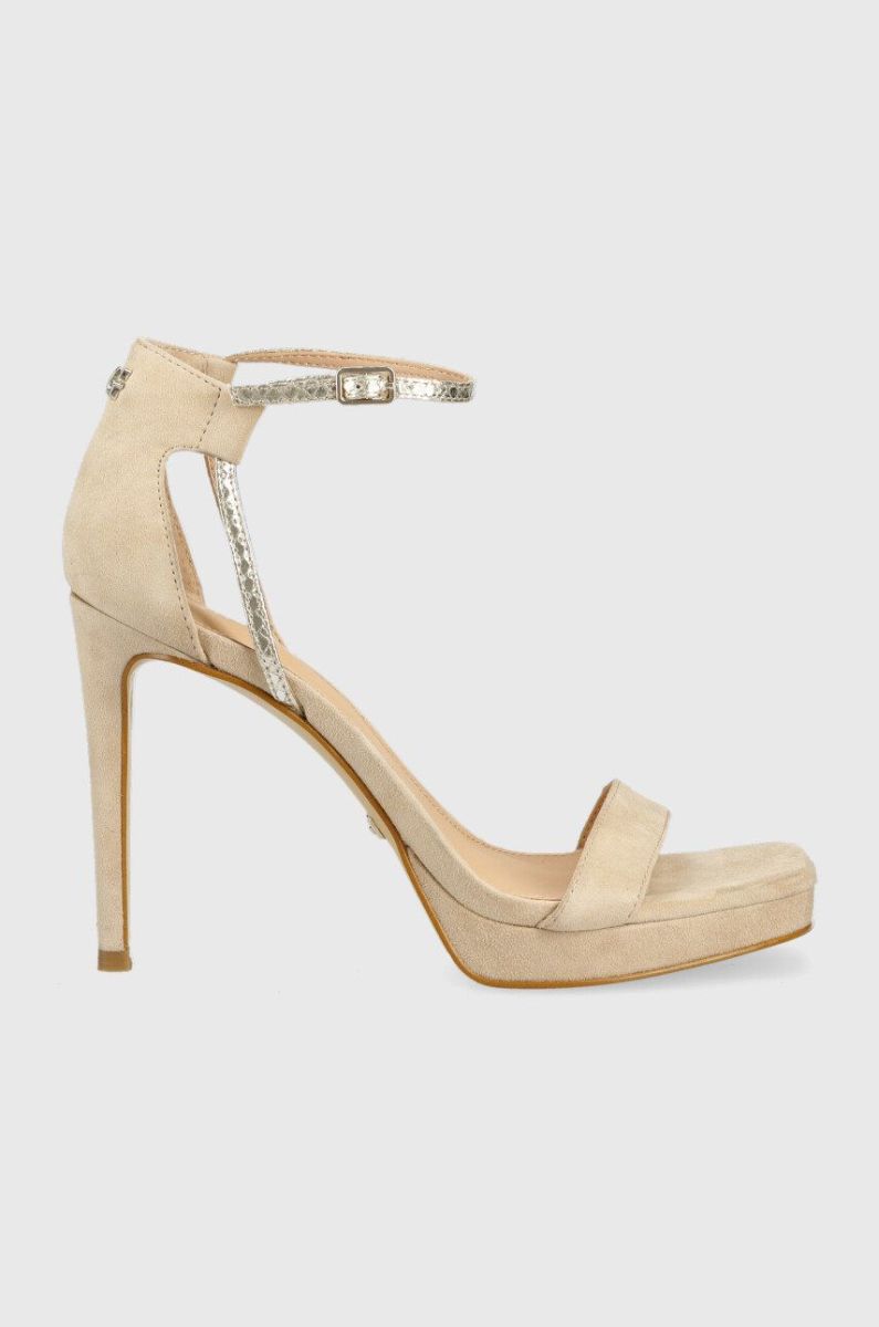 Замшеві сандалі Guess Zoila колір золотий FL5ZOI SUE03 PLATI