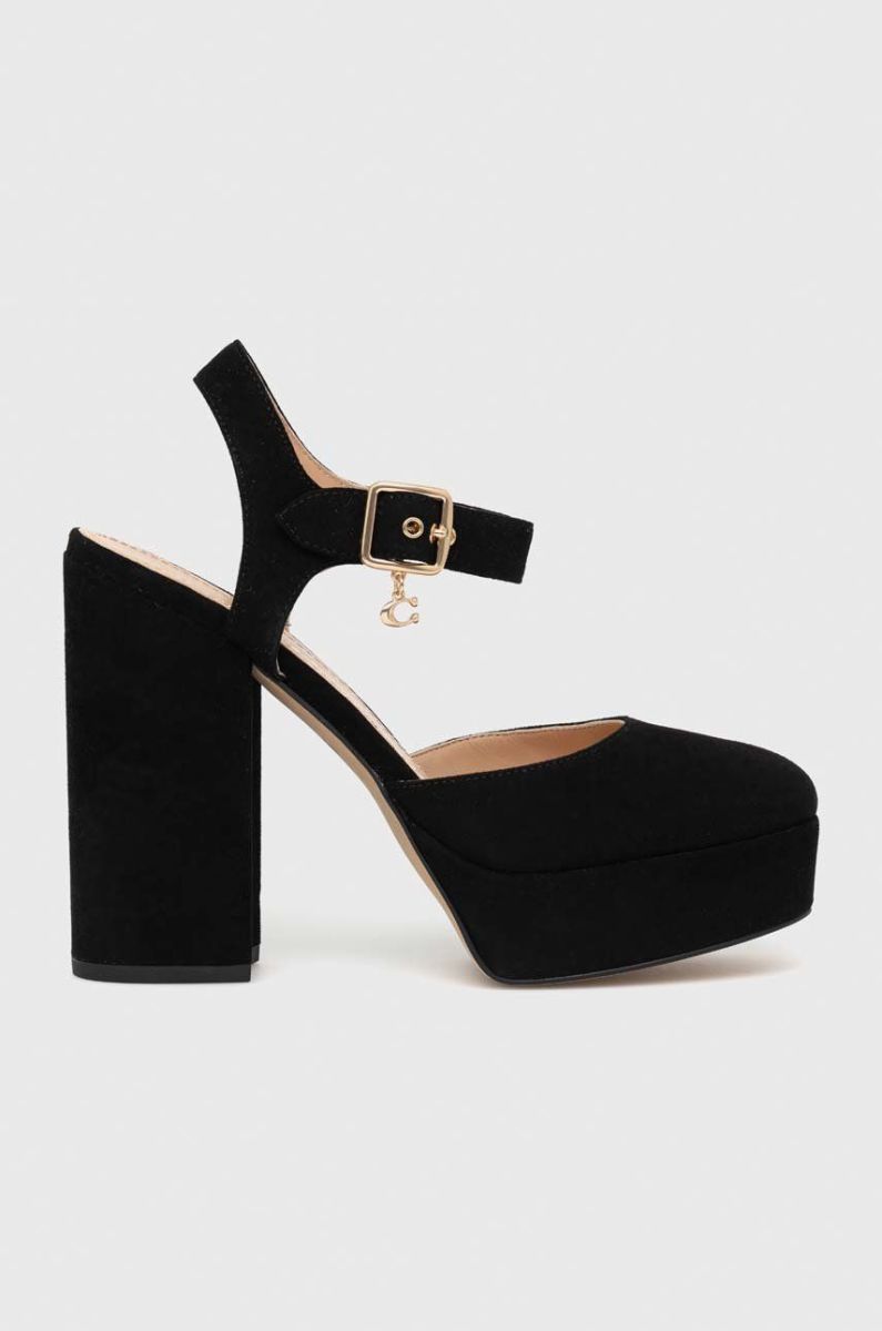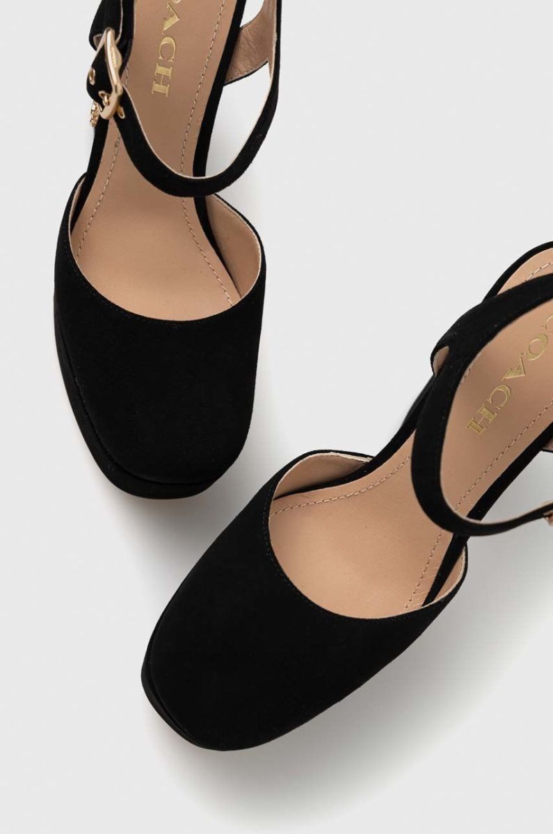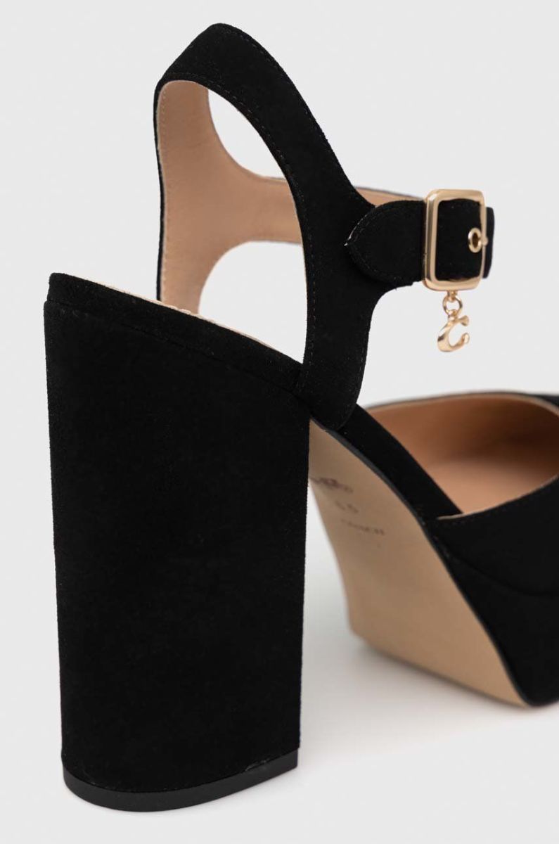 Замшеві туфлі Coach Ce296 Isabella Suede Isabella колір чорний каблук блок відкрита п'ята CE296