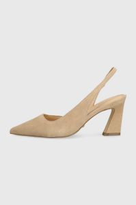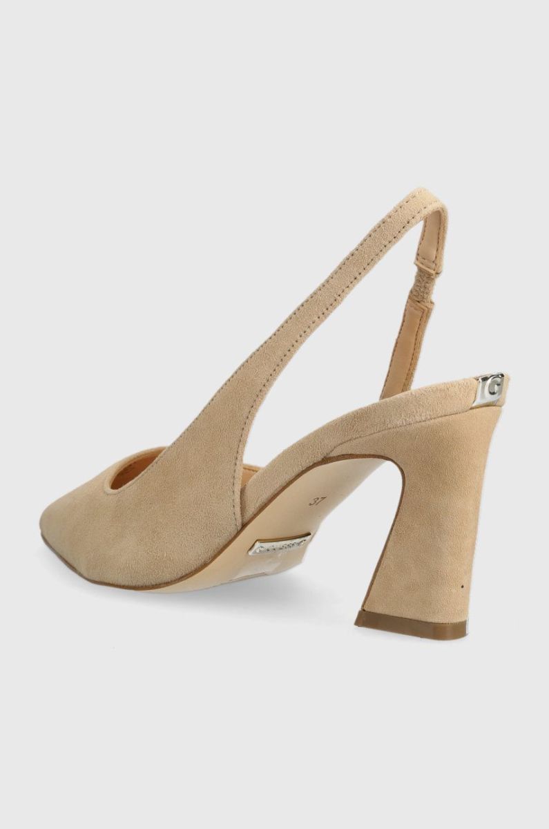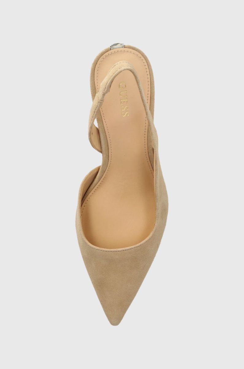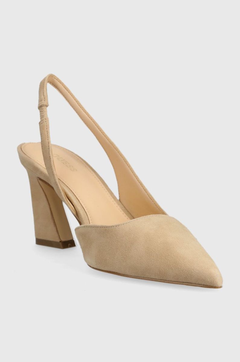 Замшеві туфлі Guess mallie колір бежевий каблук блок відкрита п'ята
