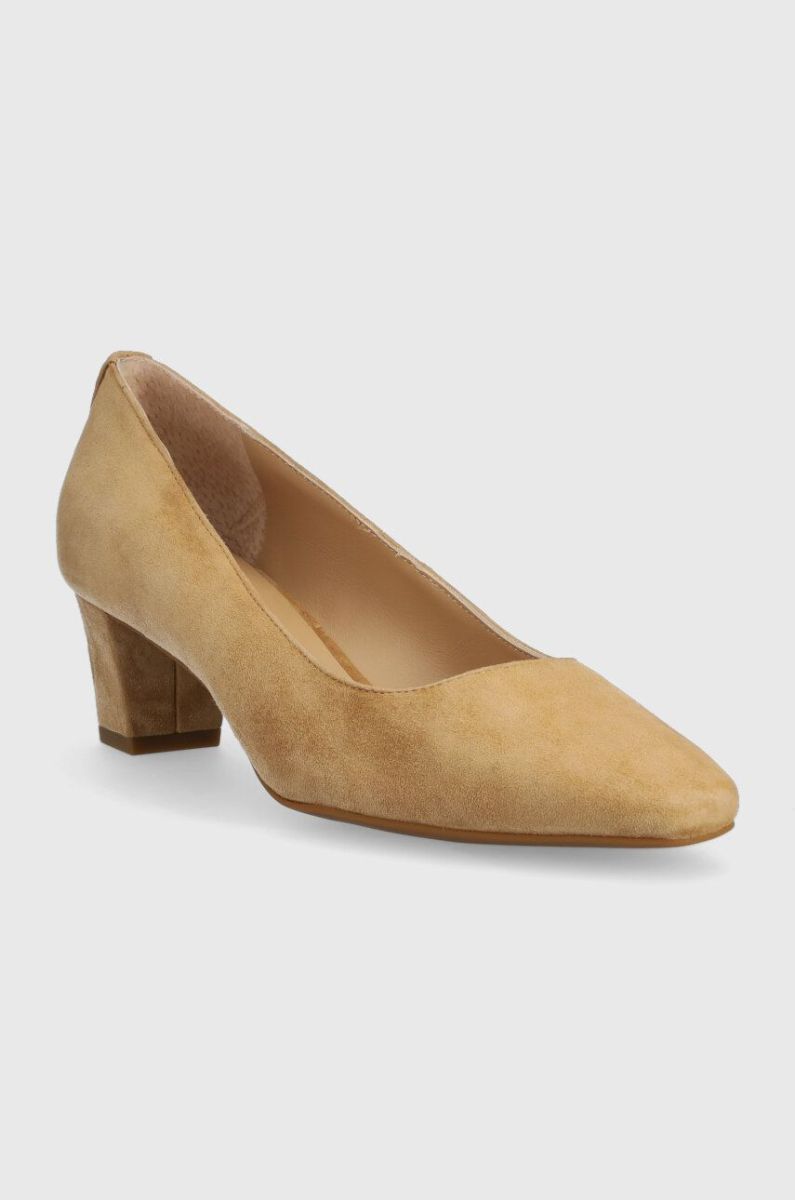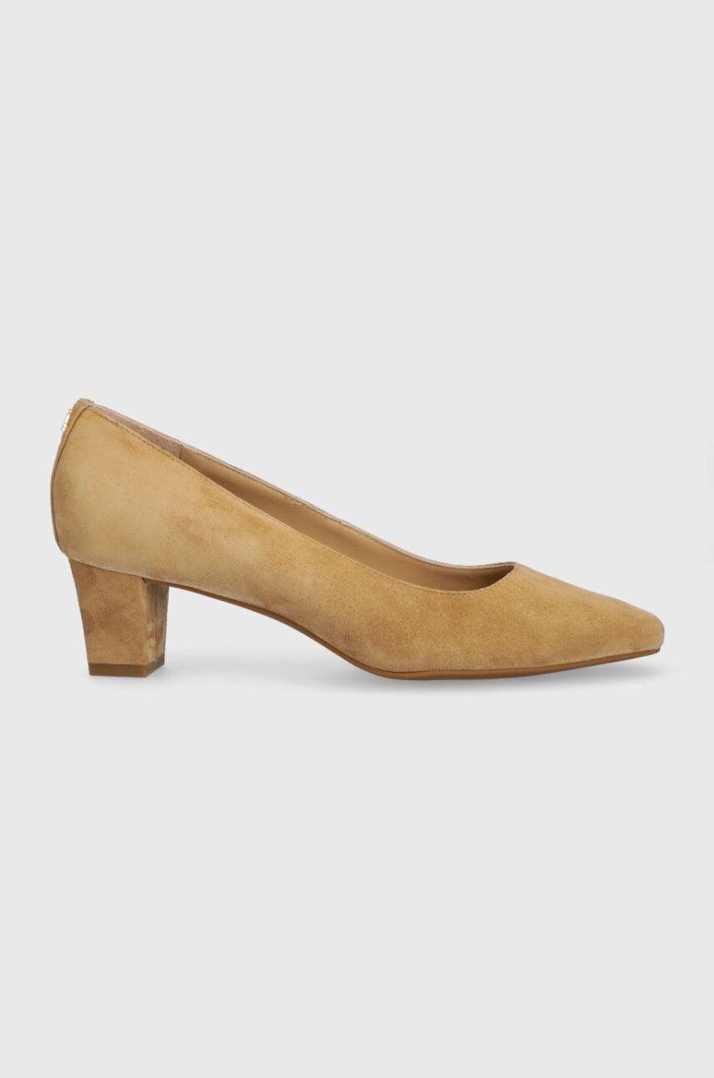 Замшеві туфлі Lauren Ralph Lauren Whitney колір бежевий каблук блок 802908307004