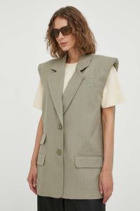 Жилетка з домішкою льону Gestuz Birly колір зелений однобортна