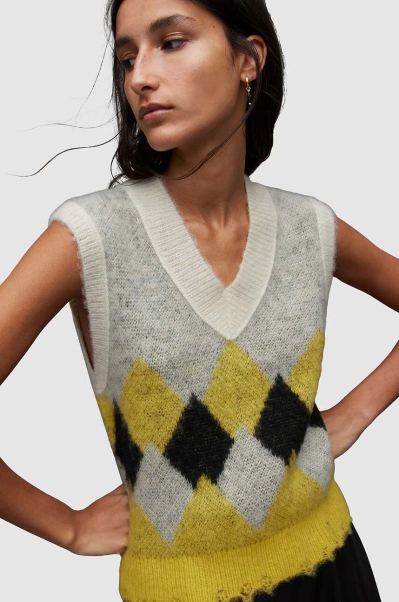 Жилетка з домішкою вовни AllSaints HOVE колір білий