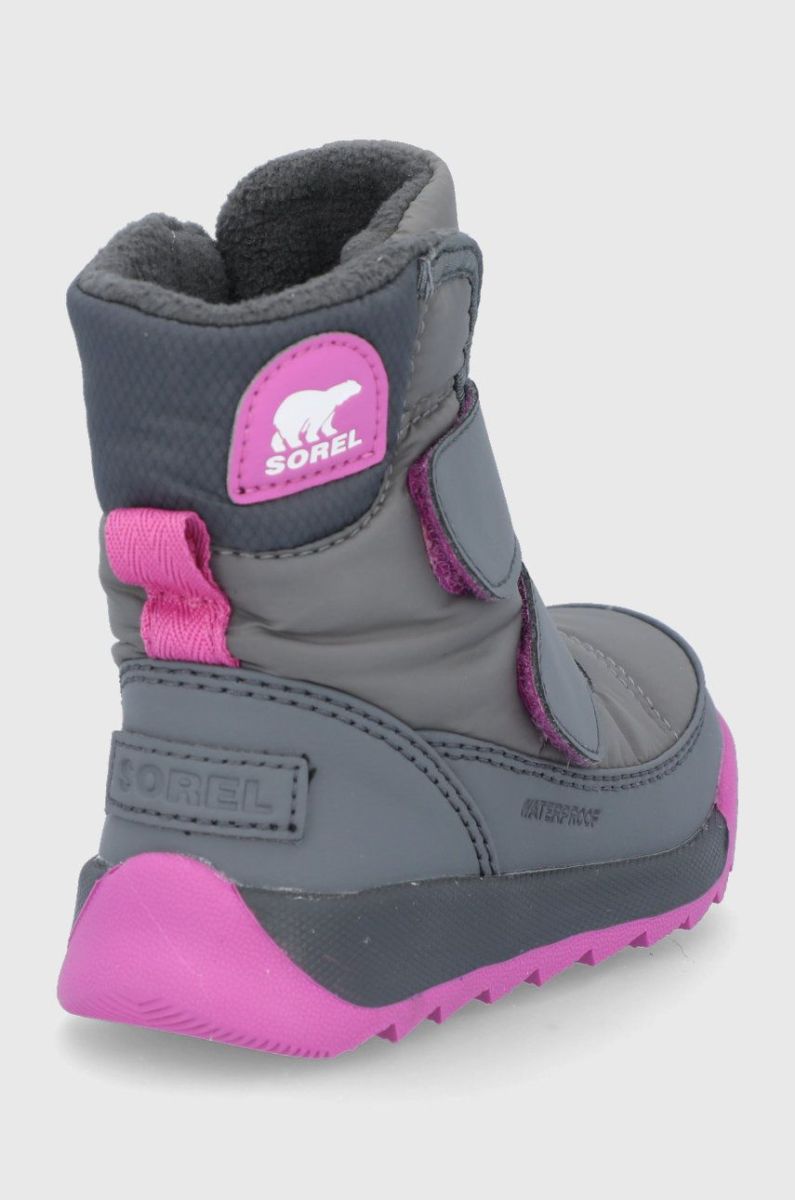Дитячі зимові черевики із колекції Sorel. Утеплена модель виготовлена із текстильного матеріалу.